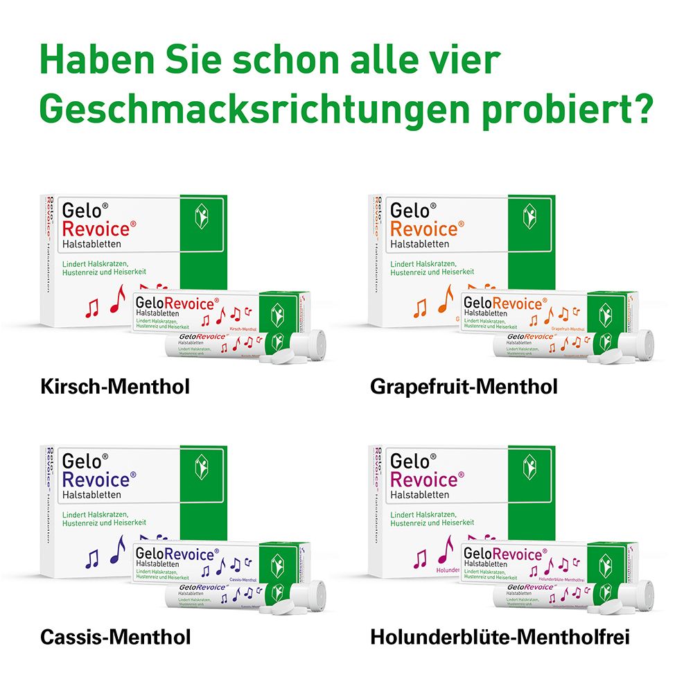 팁: 이 로젠지는 업무상 말이나 노래를 많이 하시는 분들에게 이상적입니다. GeloRevoice®를 사용하면 자주 말하거나 노래하는 분들도 항상